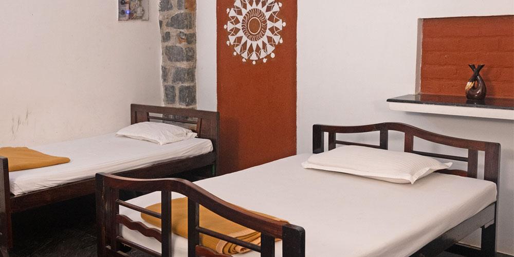 Named after the modern master of subtlety, the Asokamithran Room embraces elegance through simplicity. The interiors feature soft lighting, neat lines, and cozy bedding that invite restful nights. Mornings here begin with birdsong and the scent of freshly brewed coffee from the courtyard café. Ideal for two guests, with two optional extra beds (₹500 each).